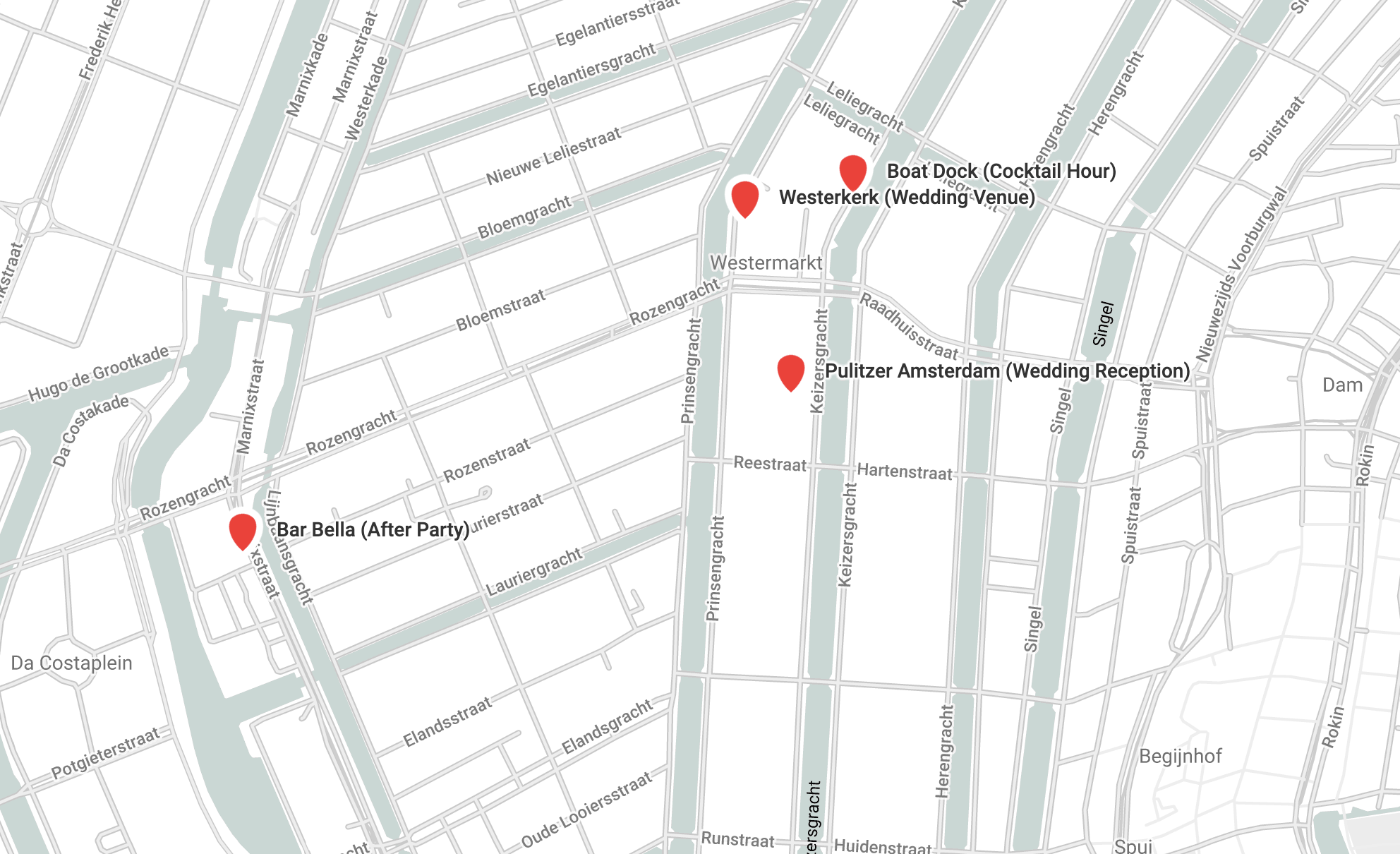 All suggested accommodations and the wedding weekend’s venues are located in the De 9 Straatjes area, which is a quaint, picturesque canal-district area featuring vintage & designer boutiques, plus cozy cafes. There are so many exciting things to experience while in Amsterdam, but here are a few recommendations.